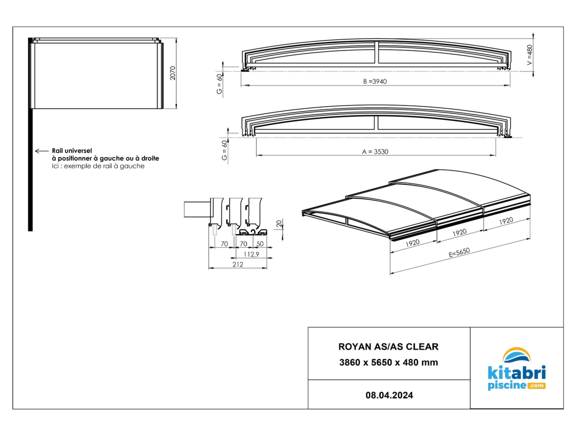 - Section des profils d'arceaux : 40 x 55 mm