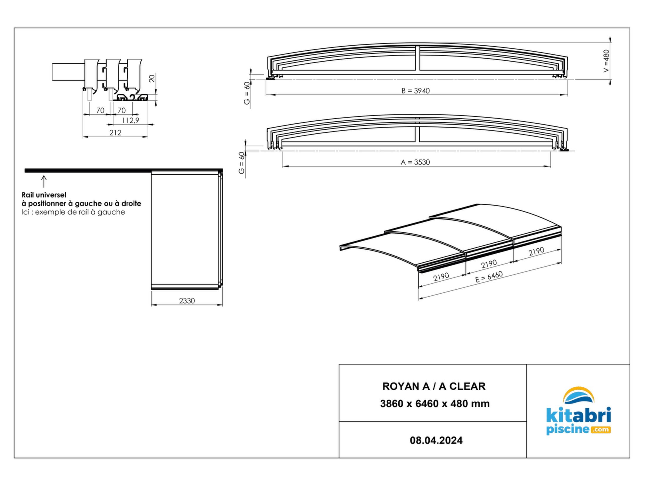 - Section des profils d'arceaux : 40 x 55 mm